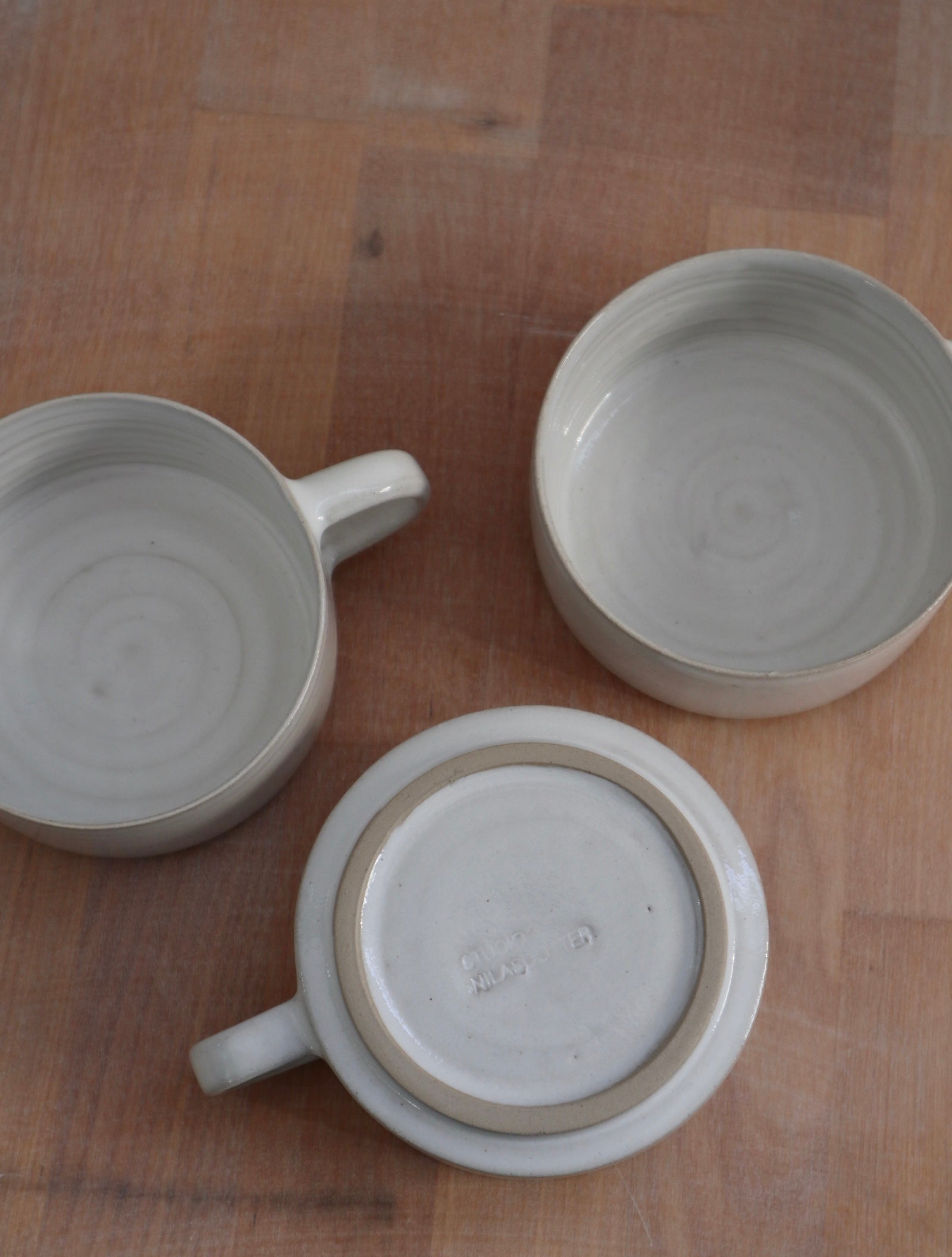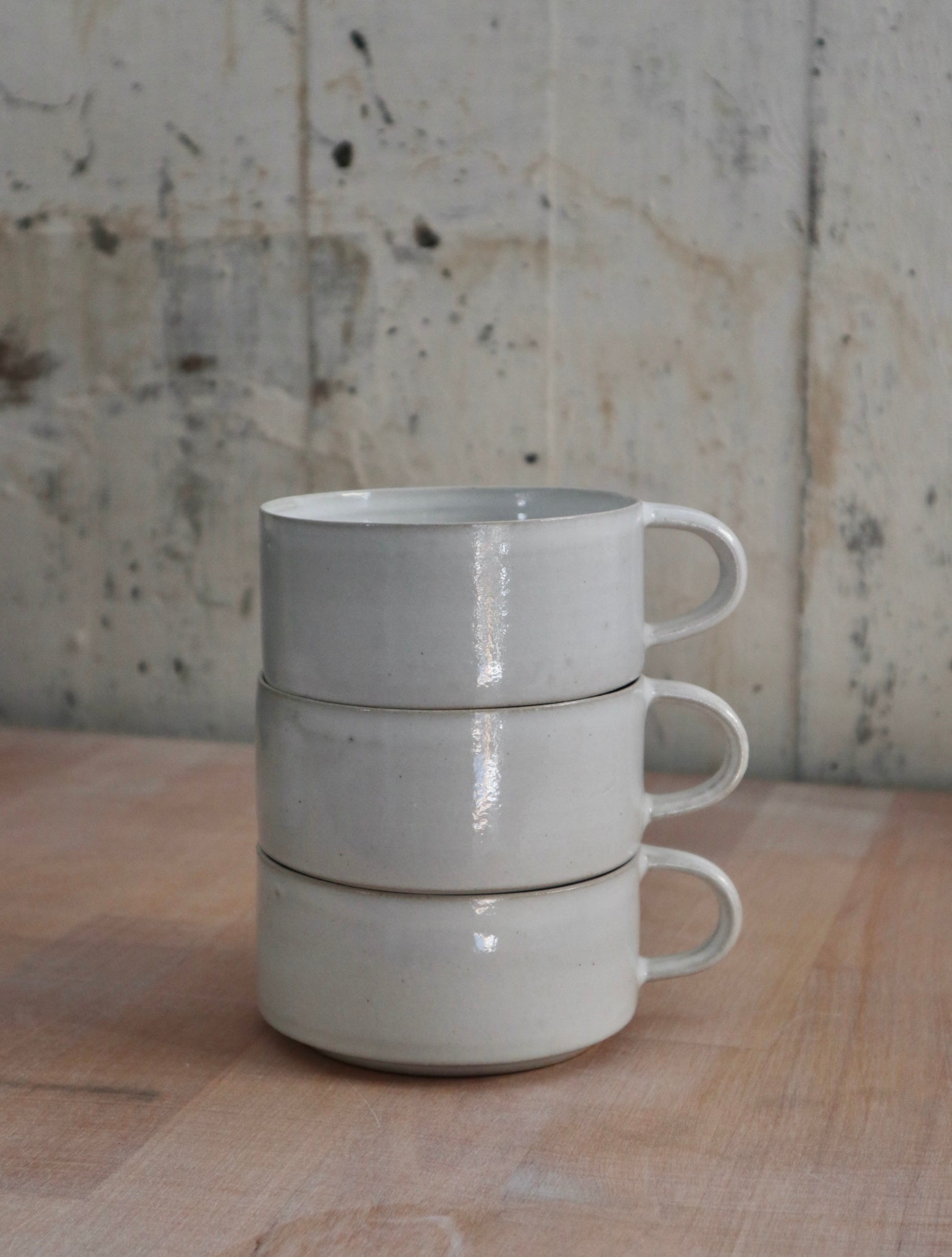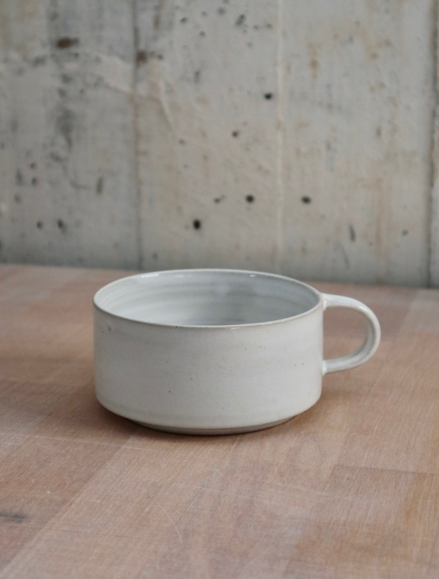 Wheel thrown in stoneware, glazed with a half shiny white glaze.